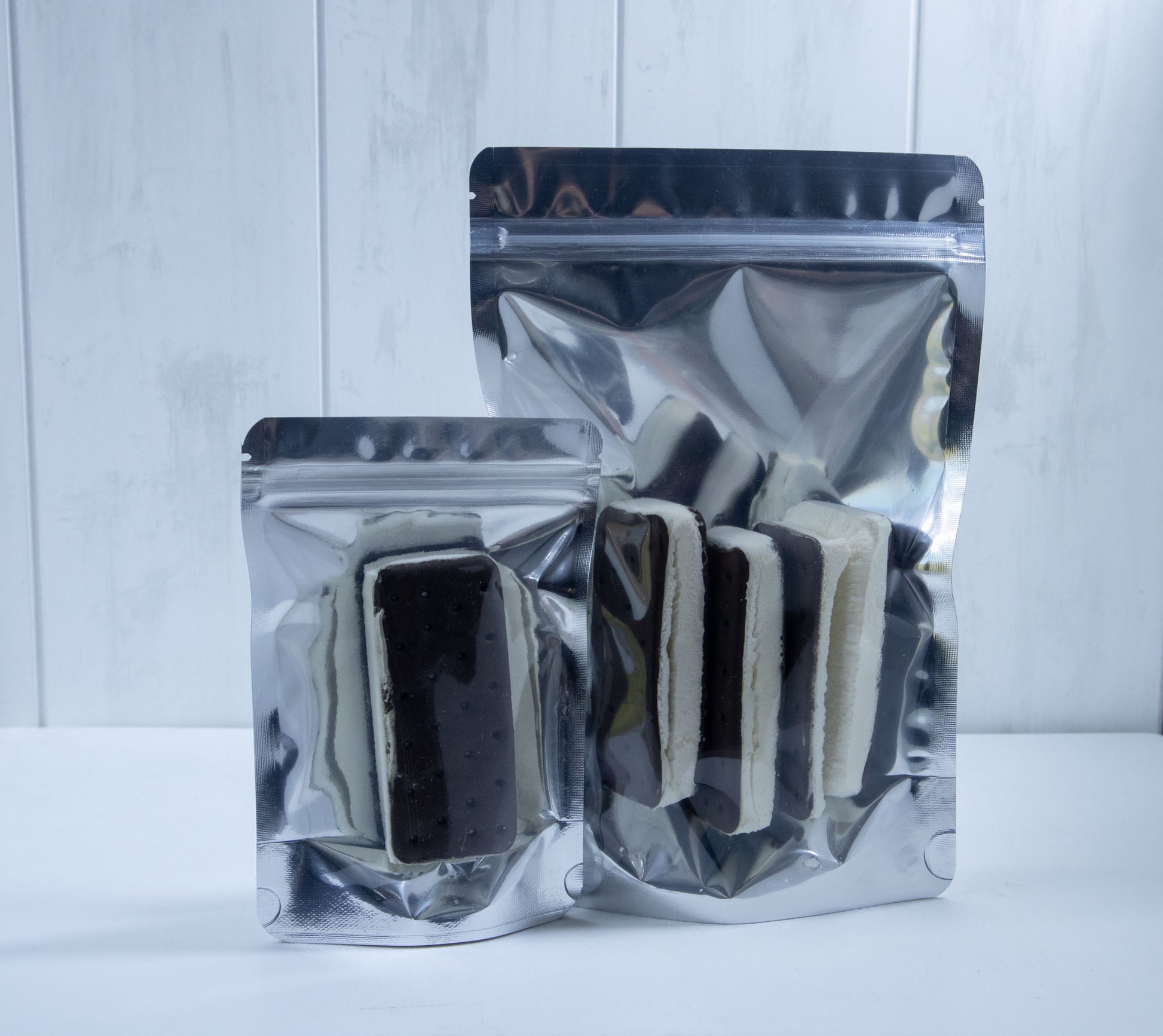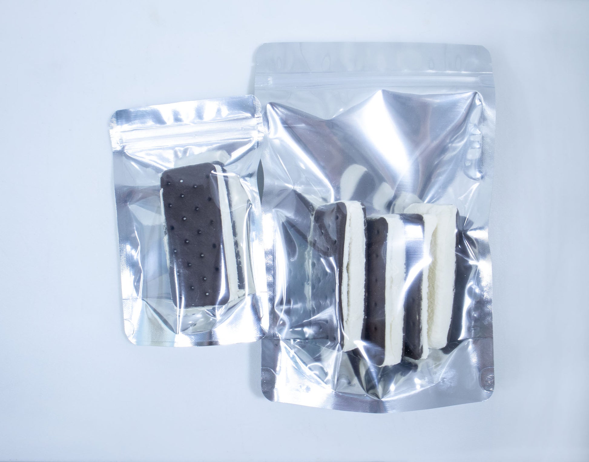 Introducing our delicious freeze-dried Ice Cream Sandwiches made with apopular Ice Cream! If you've ever wished you could take ice cream with you wherever you go, this is the perfect solution. Our unique freeze-drying process turns the creamy ice cream sandwiches into light and crunchy treats that are perfect for on-the-go snacking. Kids and adults alike will love the intensified flavor and crave-worthy texture of these astronaut-style ice cream sandwiches.