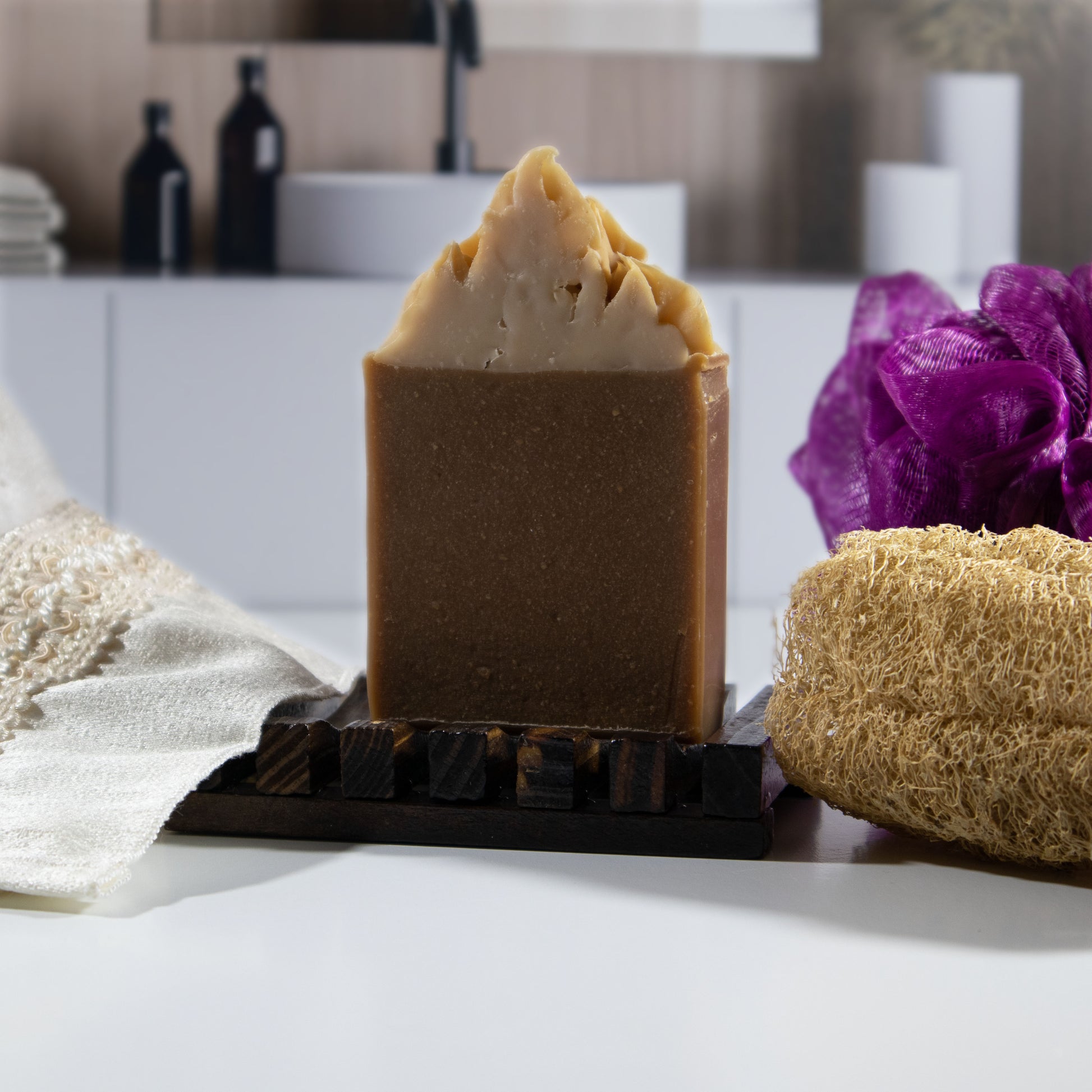 Ingredients : Olive Oil, Coconut Oil, Organic and Sustainably Grown Palm Oil, Brewed Coffee, Lye, Castor Oil, Shea Butter, Cocoa Butter, Fragrance, Rice Bran Oil, sodium Lactate, Kaolin Clay and Skin-Safe Colorants.