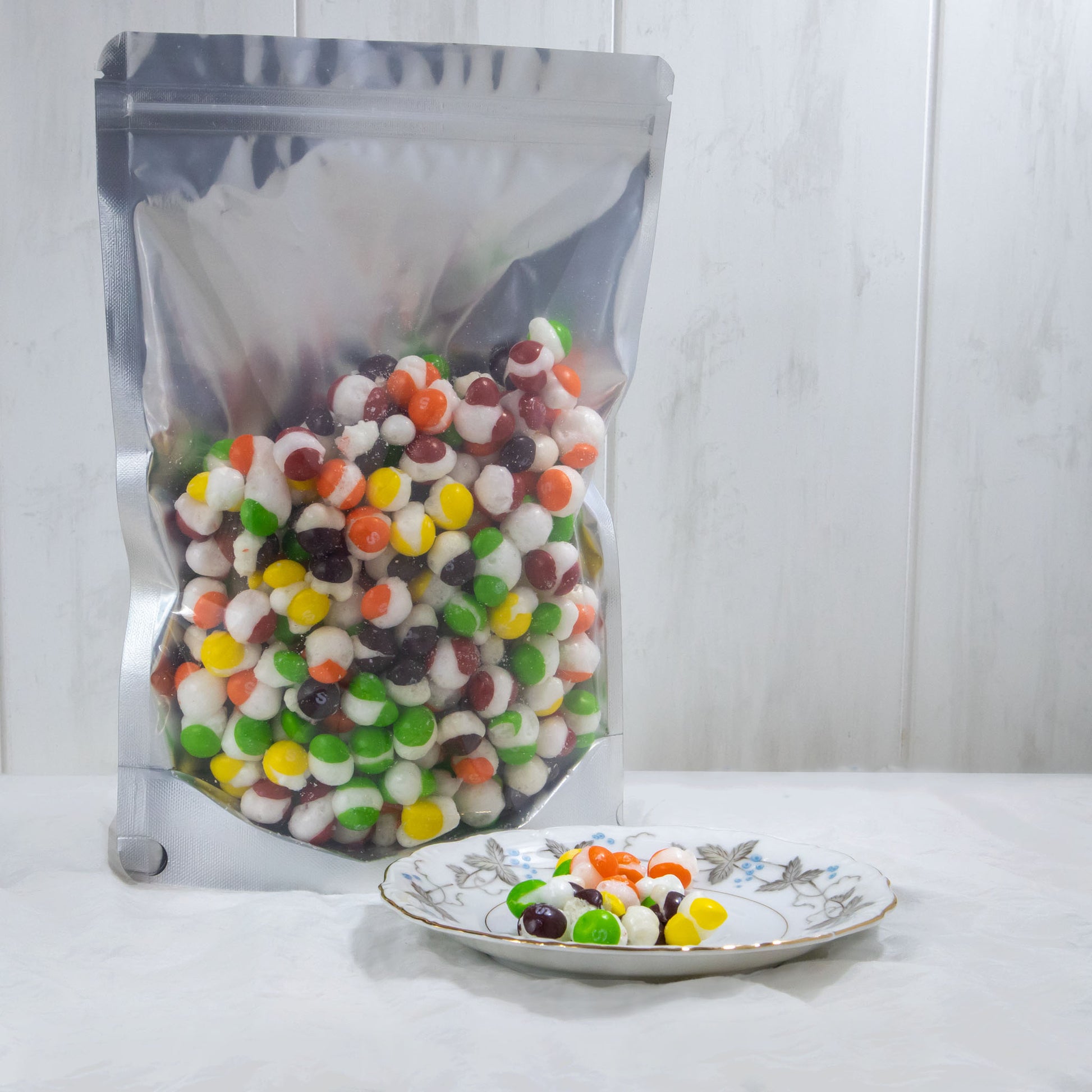 Indulge in a new and exciting way to enjoy your favorite candy with Rainbow Fruittles - Original flavor! Our freeze-dried rainbow candies are unlike anything you've ever tasted before. The unique freeze-drying process first slowly freezes the candy to -40 degrees Fahrenheit, then heats it under a vacuum to 140 degrees, removing all moisture and creating a crunchy texture that's bursting with flavor.